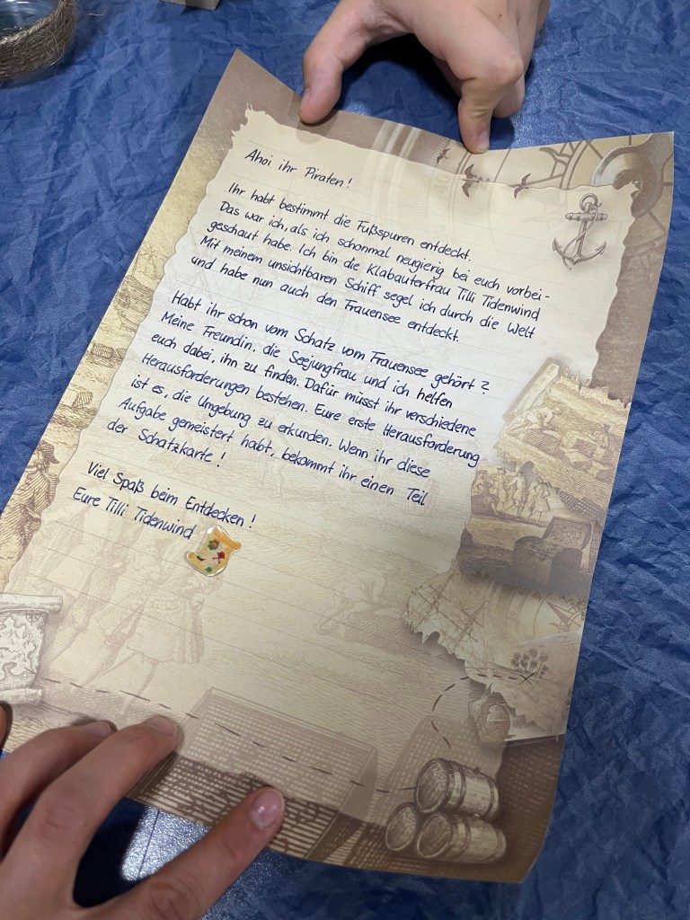 „PiratenAbenteuer“ – Tilli Tidewind besuchte uns ganz heimlich im Ferienlager und gab und verschiedene Aufgaben um am Ende den Schatz vom Frauensee zu finden. Dazwischen wurde viel wild getanzt, sein Geschick beim Sport bewiesen, Zeit in der Natur verbracht und sich kreativ ausgetobt. Dazu kommt natürlich Disco, Nachtwanderung und auch das Baden kam nicht zu kurz.